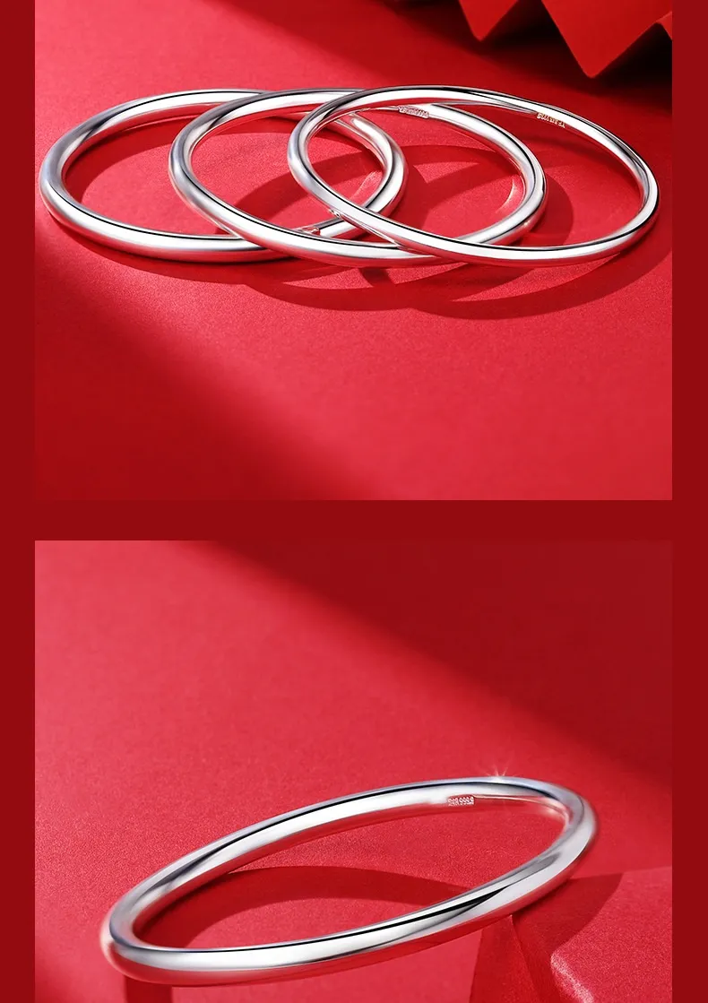 Pure Silver 9999 Glossy Silver Bracelet Closed Aperture Round Bar Simple Female