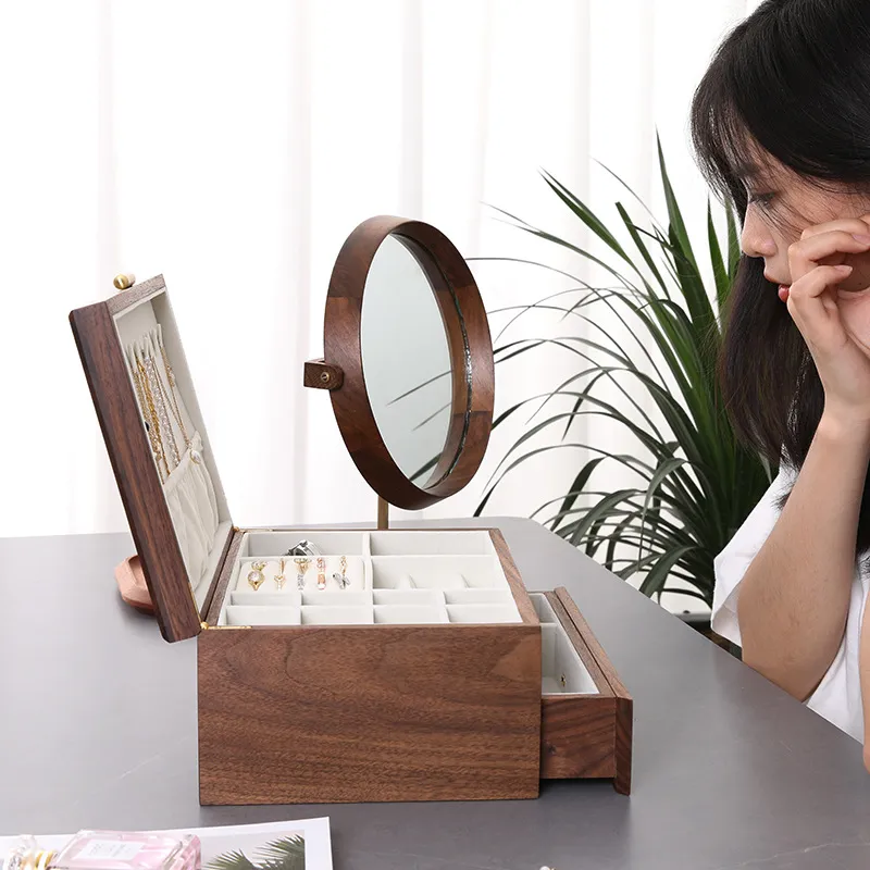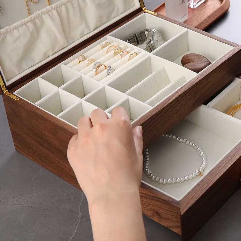 Color : Walnut Jewelry Box - Double Layer
