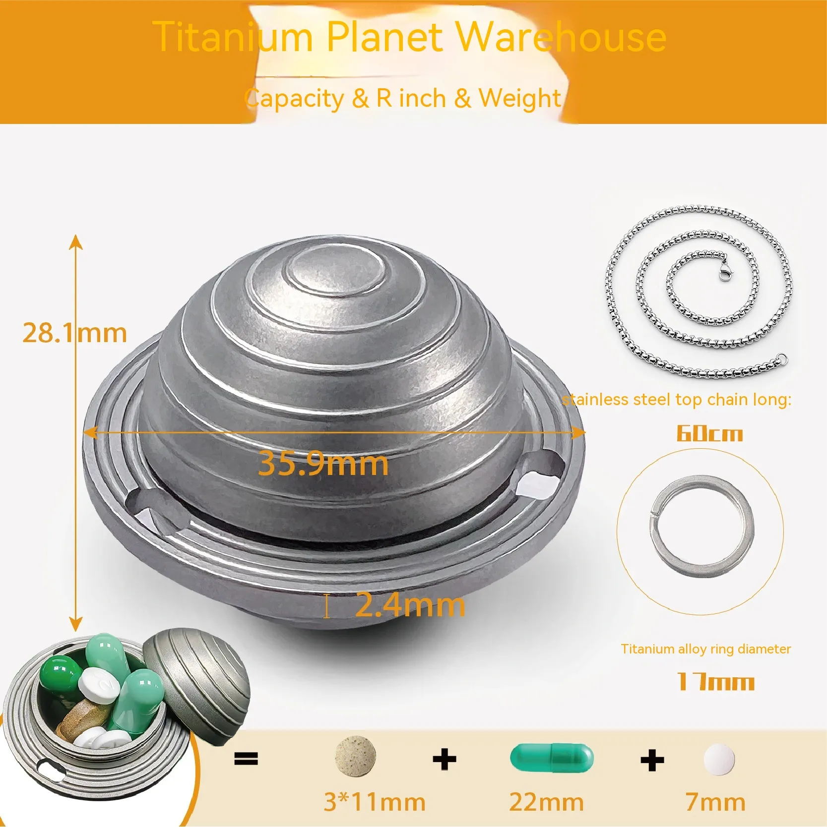 Pure Titanium Planet Sealed Small Keychain Medicine Box Bottle Waterproof Bin Can