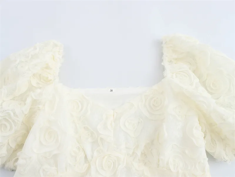 romance to your outfit. With its intricate floral embroidery, voluminous puff sleeves, and breathable fabric, it offers both style and