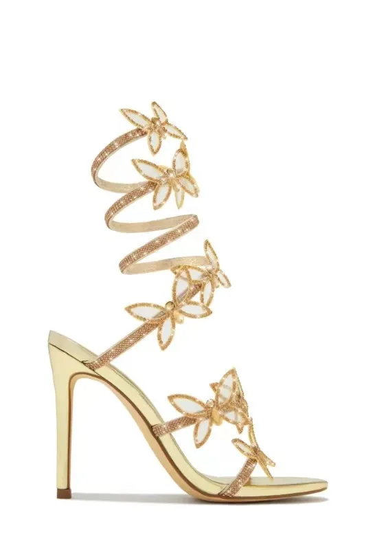 Elegant Butterfly Detailing: The standout feature of these heels is the beautifully crafted butterfly design that graces
