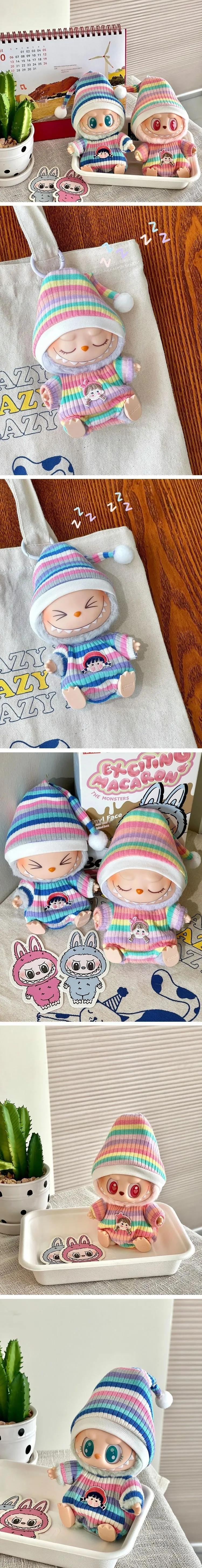 Color: pink sunken stripe jumpsuit hat (without doll), Blue sunken stripe jumpsuit hat (without doll)