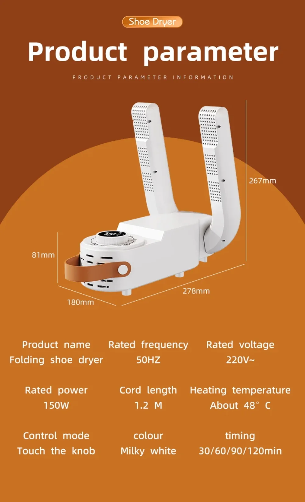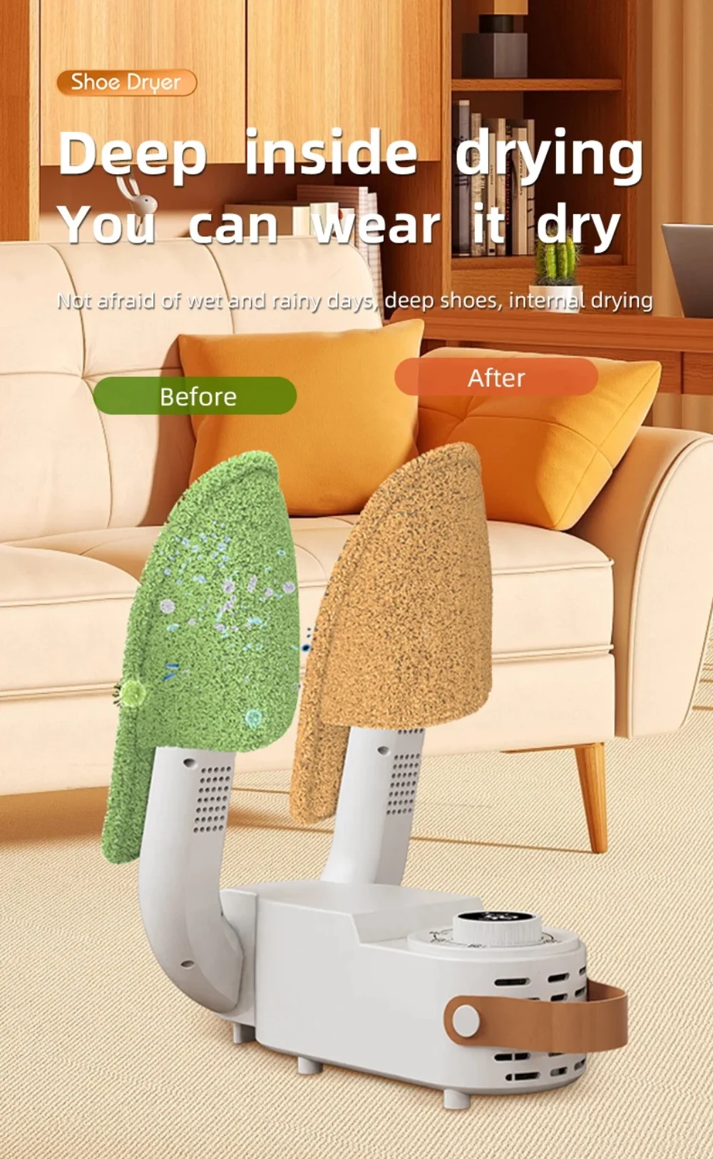 Intelligent Timer: The intelligent timer of this dryer provides convenient and efficient drying, ensuring that your shoes receive timely and appropriate drying and deodorization.