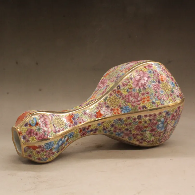 Color: Qing Qianlong pastel kaleidoscope pattern bulbous lipped vase antique antique antique porcelain distressed porcelain package old gift