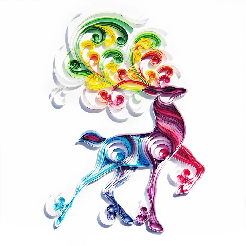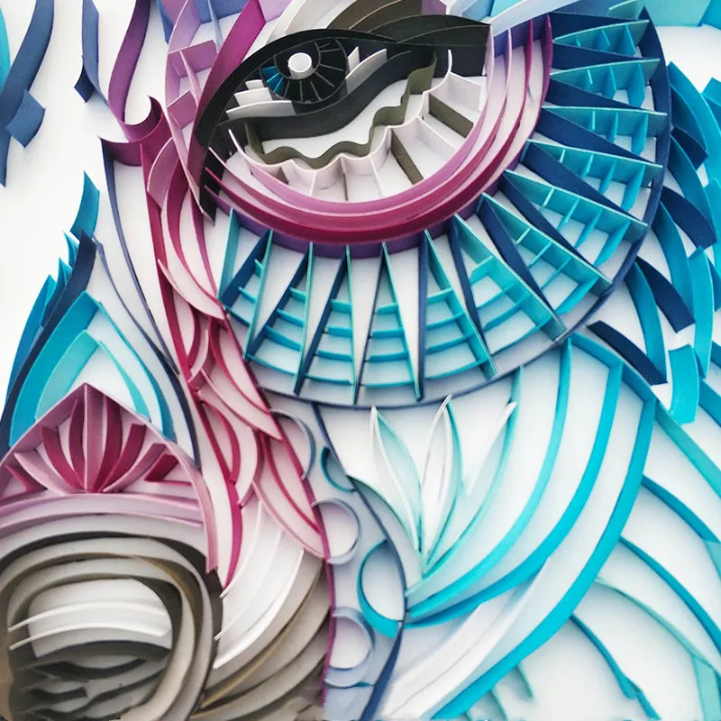 - Intricate quilted paper design: Layers of paper are folded and stitched to create texture, depth, and movement within the artwork.