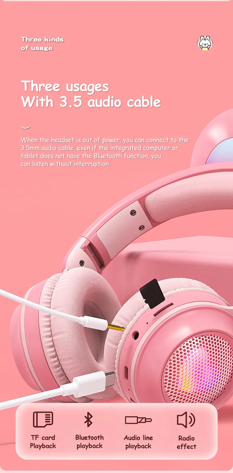 Rabbit Ear Headphones Wireless Luminous