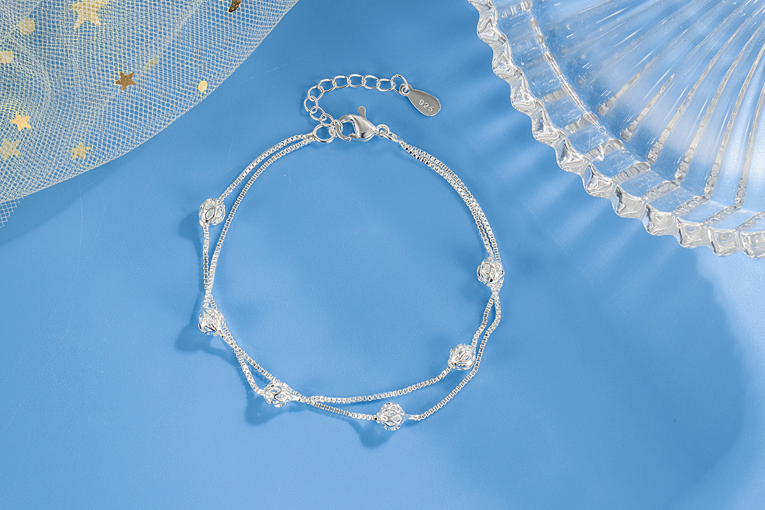 Description: Introducing the Radiant Sphere Double-Layer Bracelet, a perfect blend of elegance and contemporary fashion. This exquisite bracelet features a unique double-layer design, adorned with intricate hollow-out spheres that catch the light beautifully, creating a mesmerizing effect. Each sphere is meticulously crafted to add a touch of sophistication and modern flair, making this bracelet a standout piece in any jewelry collection.