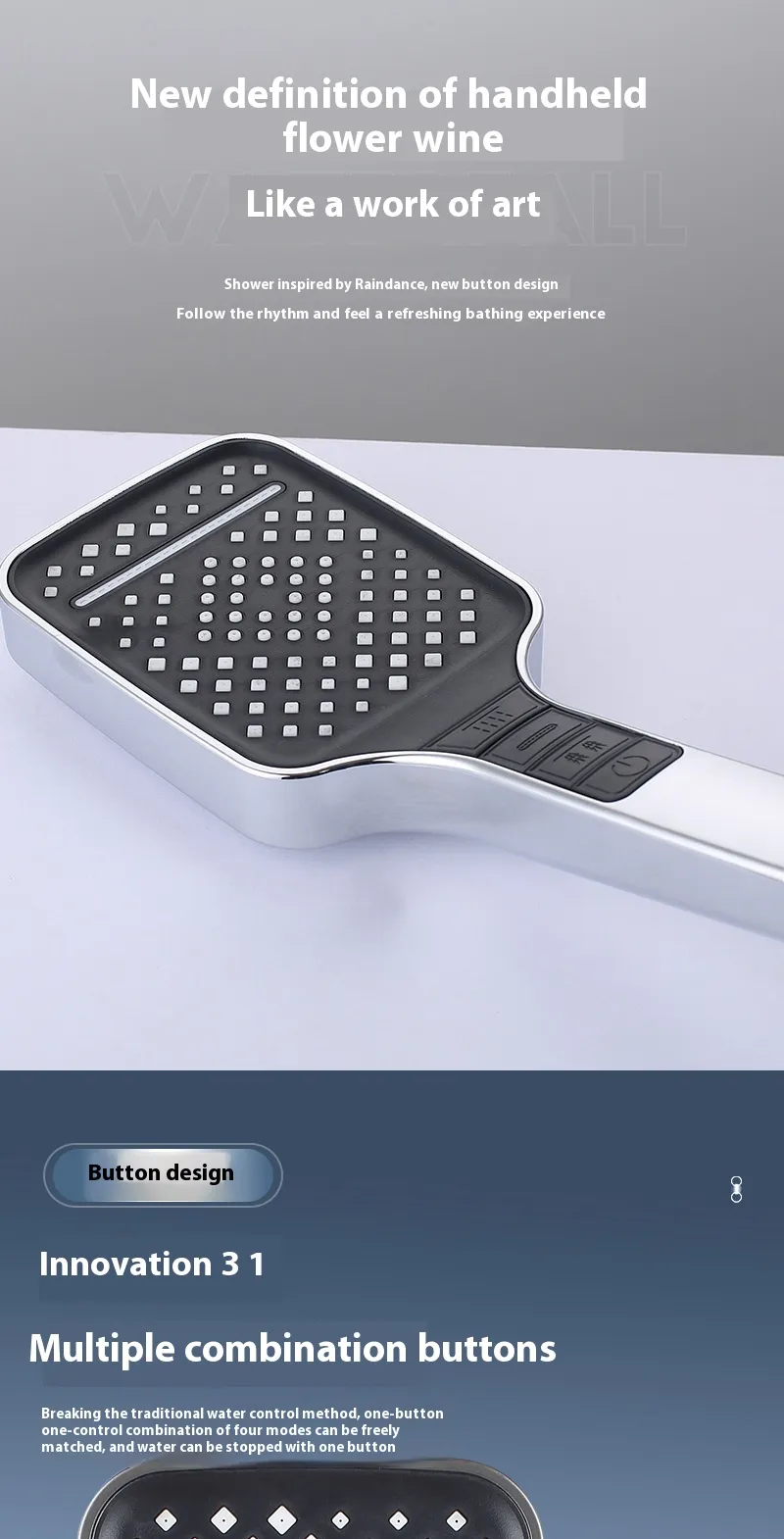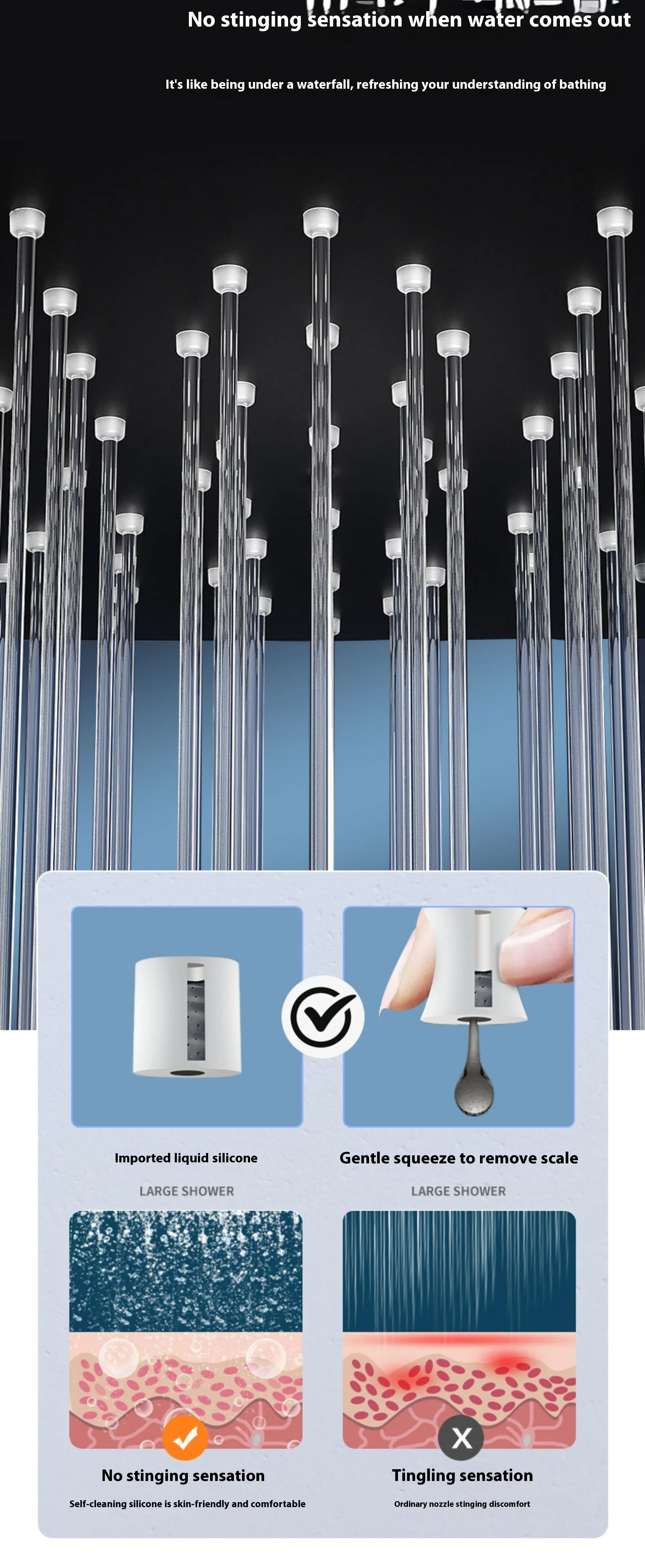 The rainfall design provides a soothing, gentle cascade of water that envelops your body, offering a high‑end spa experience without leaving