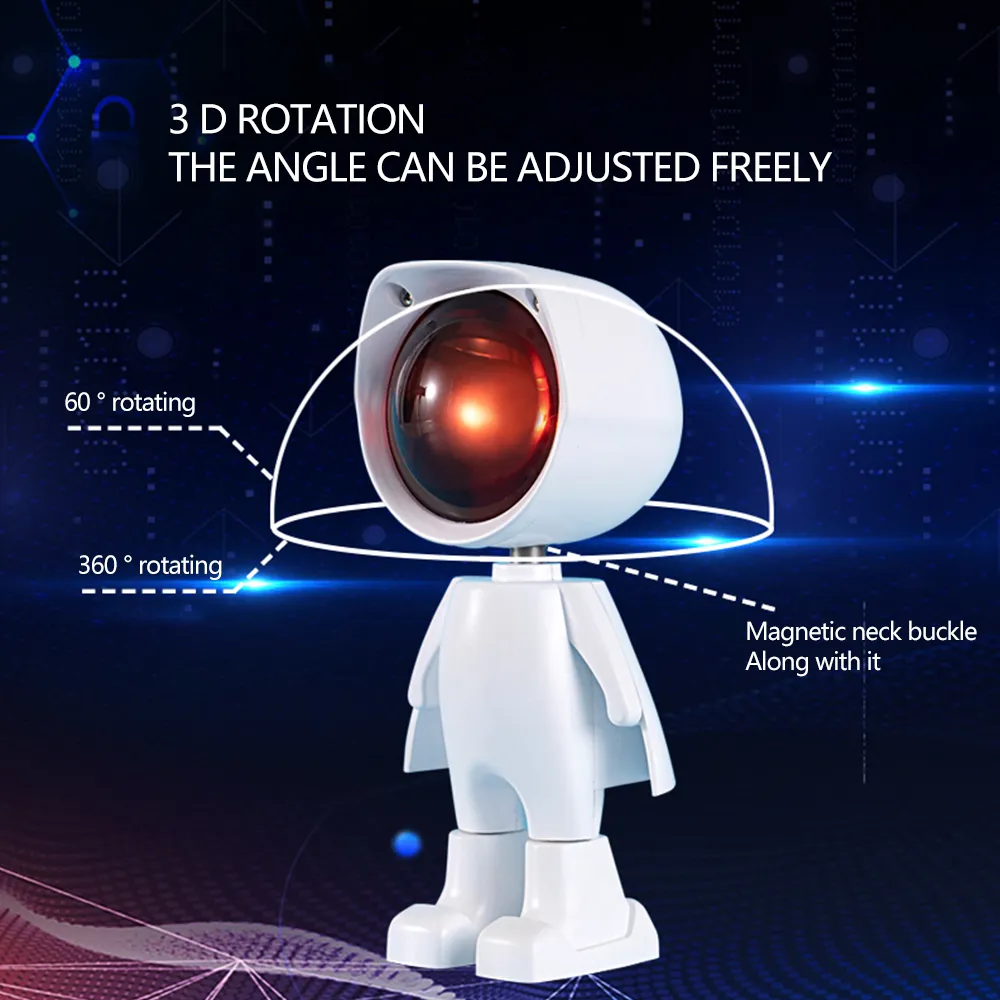 The robot design of this lamp adds a fun and quirky touch to your decor. With its adorable robot figure, this projector lamp is more than just a light—it’s also a cute and playful decorative piece for your room. It’s perfect for kids' rooms, nurseries, or any space that could use a touch of whimsy. The design ensures that the lamp not only serves as a mood light but also as a charming addition to your home decor.