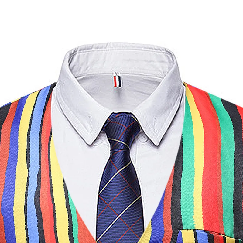 In addition to its vibrant design, the rainbow waistcoat offers a comfortable and flattering fit, making it suitable for various occasions. Its versatility means it can be dressed up or down, allowing you to wear it in both casual and formal settings.