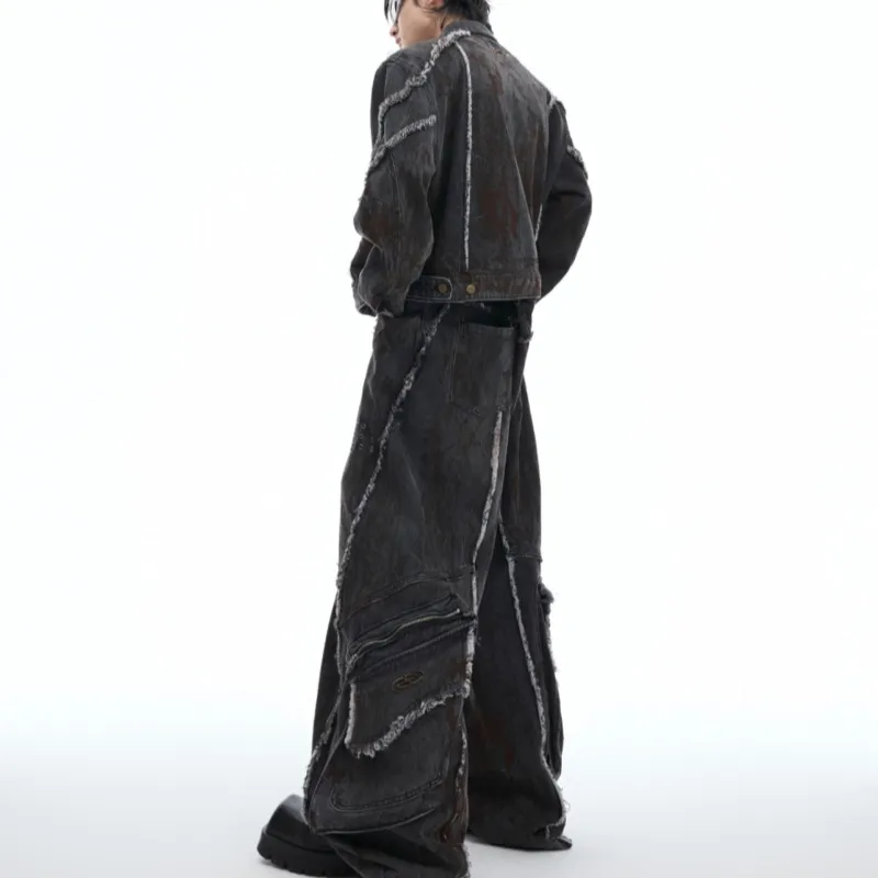 The Raw Edge Splash-dyeing Distressed Padded Shoulder Denim Coat is the ideal choice for those who want to add a touch of rugged individuality to their wardrobe. With its unique, artistic design and durable denim fabric, this coat combines fashion and practicality. The padded shoulders provide extra structure, making it perfect for those who want to embrace both style and confidence. Whether you're heading out for a casual day or a night on the town, this coat is the perfect addition to your wardrobe, offering versatility, comfort, and bold style.