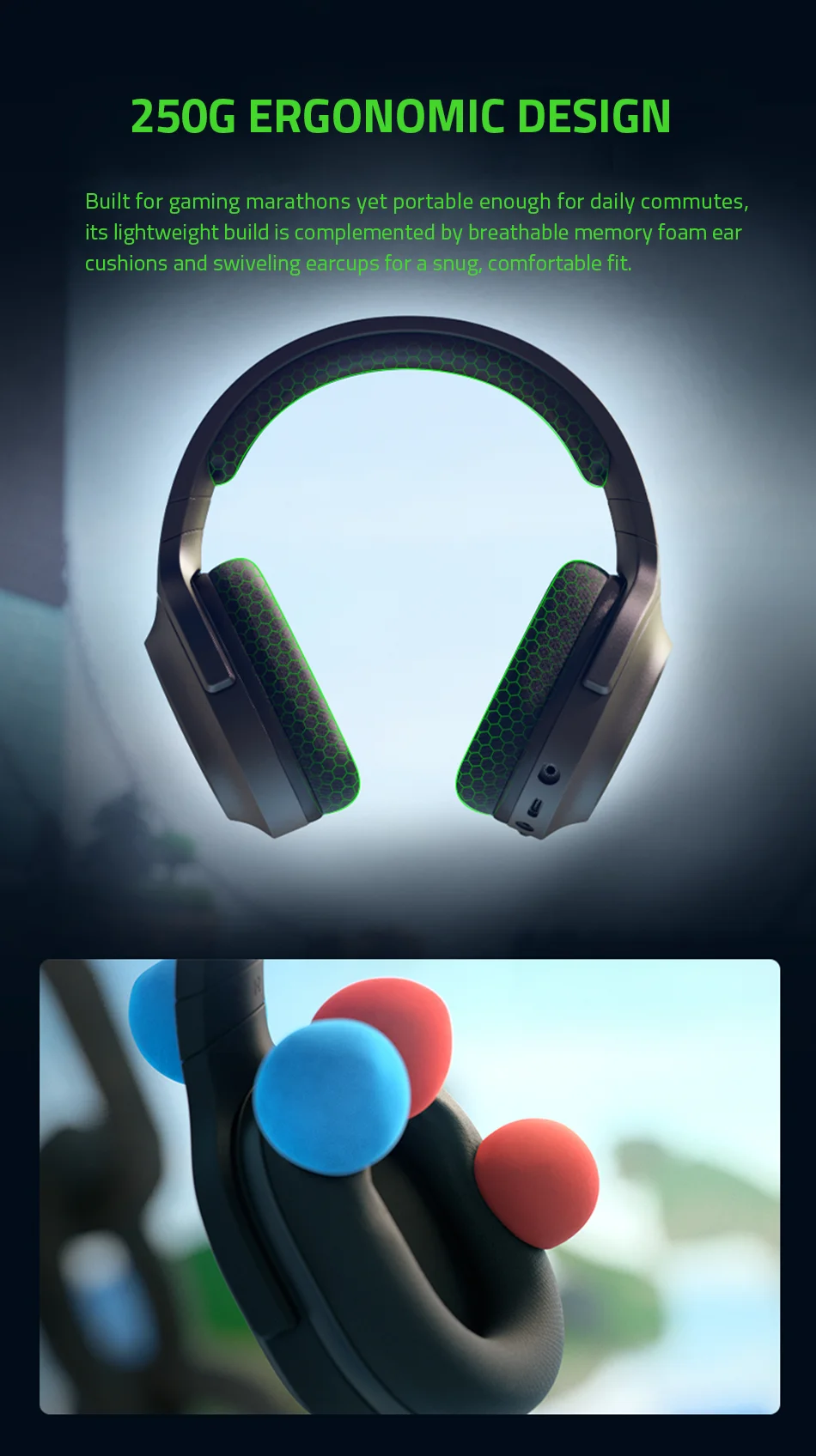 Built for gaming marathons yet portable enough for daily commutes, its lightweight build is complemented by breathable memory foam ear cushions and swiveling earcups for a snug, comfortable fit