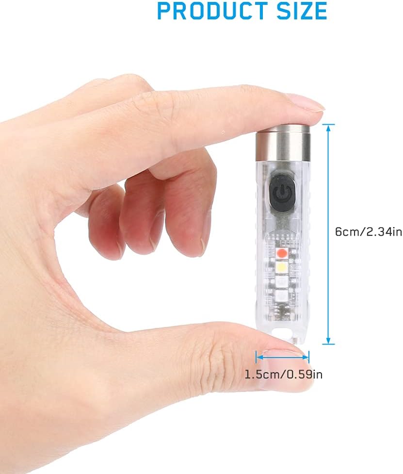 Compact and Portable The keychain design allows the flashlight to be easily attached to keys, backpacks, or belt loops, ensuring that it is always within reach. Its compact size makes it easy to carry, and it can be comfortably held in one hand. Despite its small form factor, the flashlight's ergonomic design provides a comfortable grip.