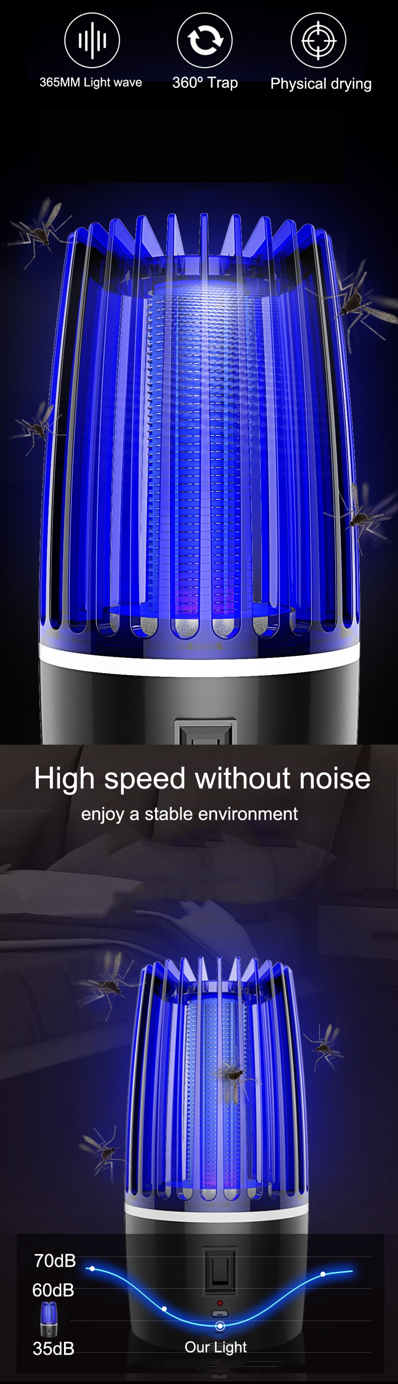 6. UV wavelength 360-400nm, designed to attract insects.
