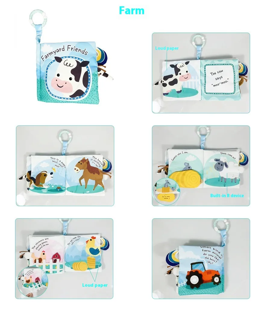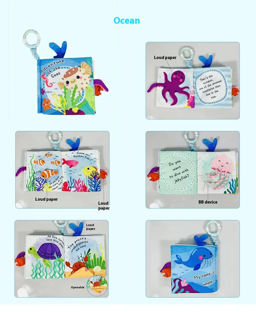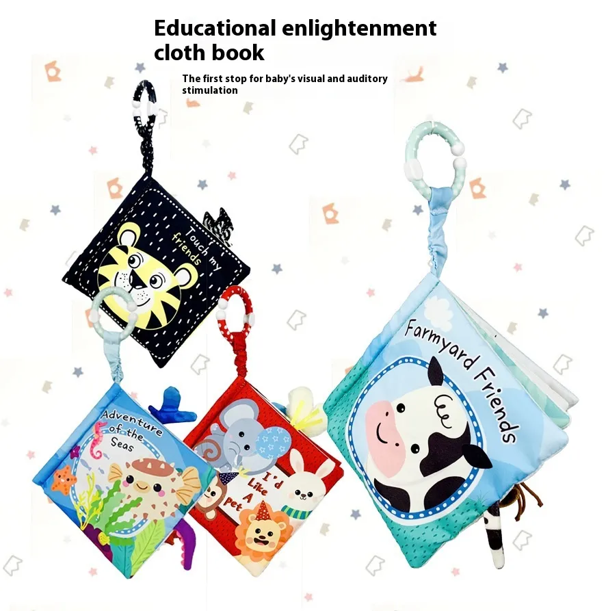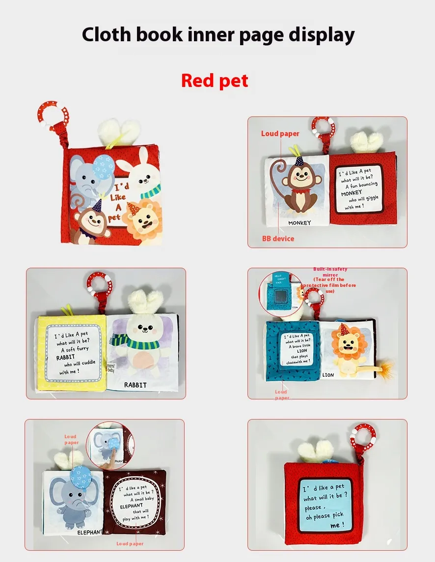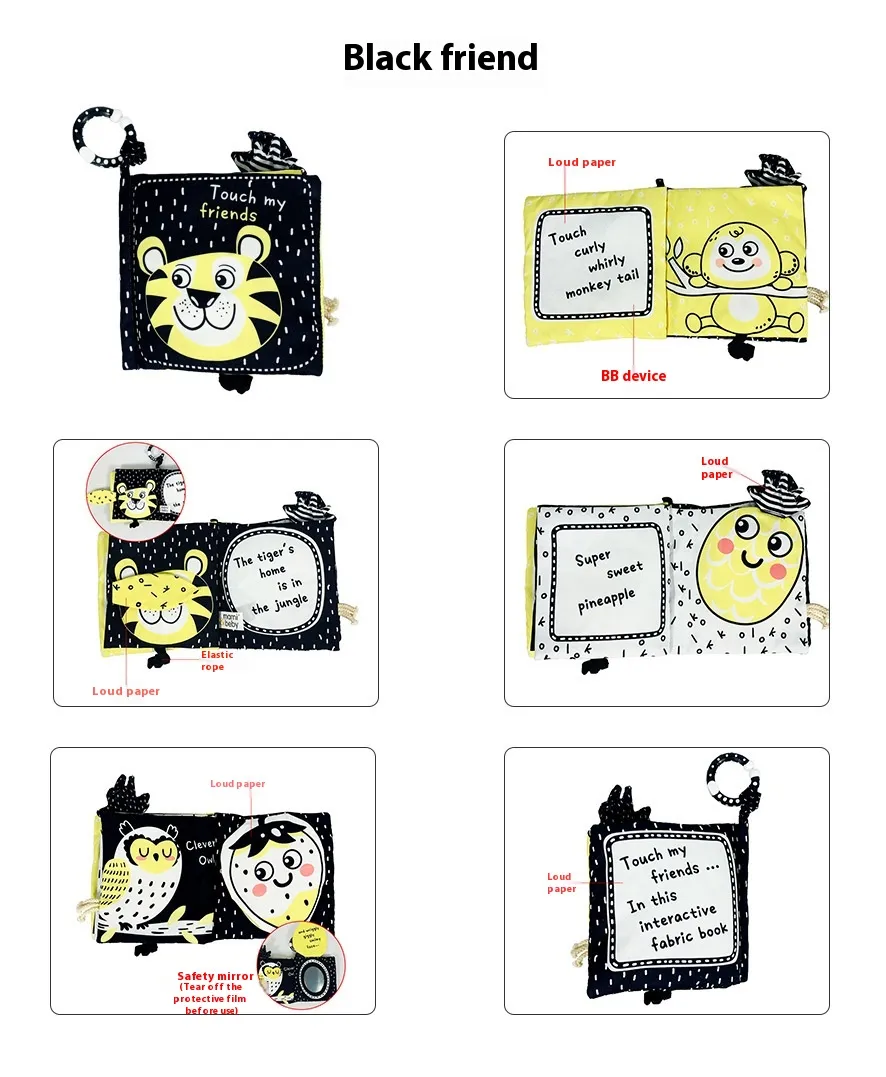 The Red New Style Black Scene Babies' Cloth Book is designed with interactive features to keep babies engaged. Some of these features include: