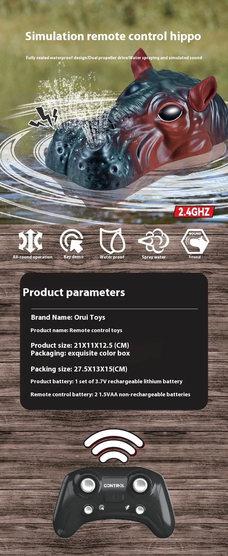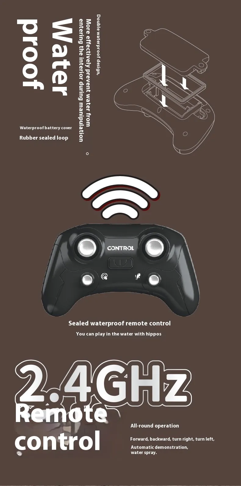 Key Features of the Remote Control Hippo Water Spray Animal Toy Boat