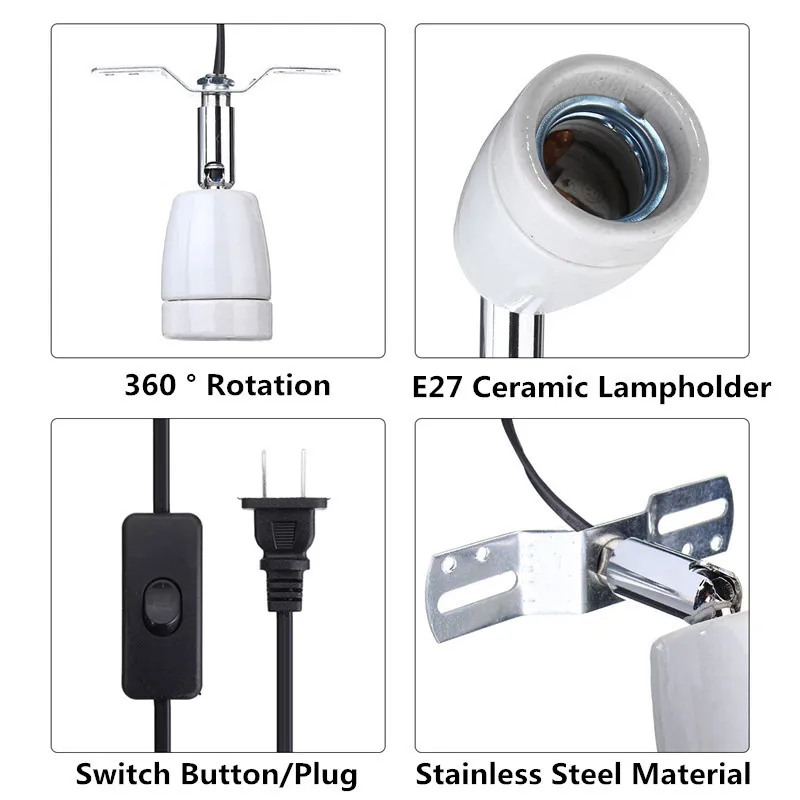 Suitable for reptile clamp lamp, can be equipped with ceramic heaters, UVA, UVB rays, infrared heater, etc
