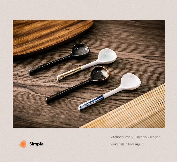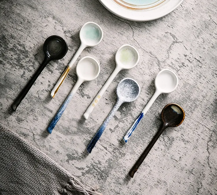 Restaurant Home Kitchen Utensils Creative Retro Ceramic Long Handle Spoon