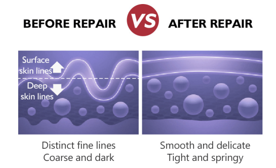 - Hydrates, plumps, and firms the skin, reducing fine line and wrinkle formation