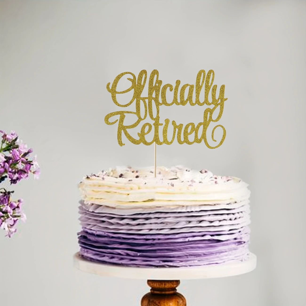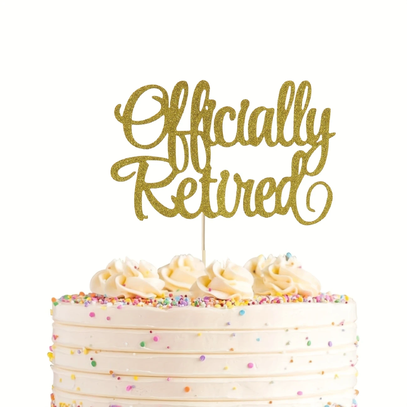 One piece of a gold glitter cake topper for retirement celebrations, perfect for decorating cakes. It features a message about being retired and indicates a no work zone, suitable for both men and women. Ideal for retirement parties and photo booth props.Avoid placing the beautiful cake topper hat in the microwave or oven, as it is intended for decorative purposes. This is the ideal cake decoration for themed parties and can enhance any celebration's cake. It is suitable for cakes, ice cream, and overall party decor, contributing to a festive atmosphere and making birthday celebrations more special. The cake top hat is securely packaged in cardboard for protection; please reach out to us promptly if it sustains any damage during shipping.