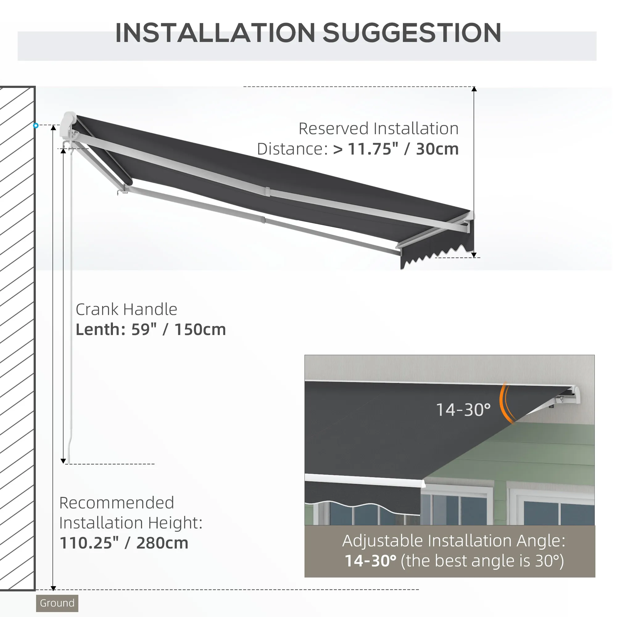 - - NOTE: Please install it, so the crank handle is on the left as you face the awning