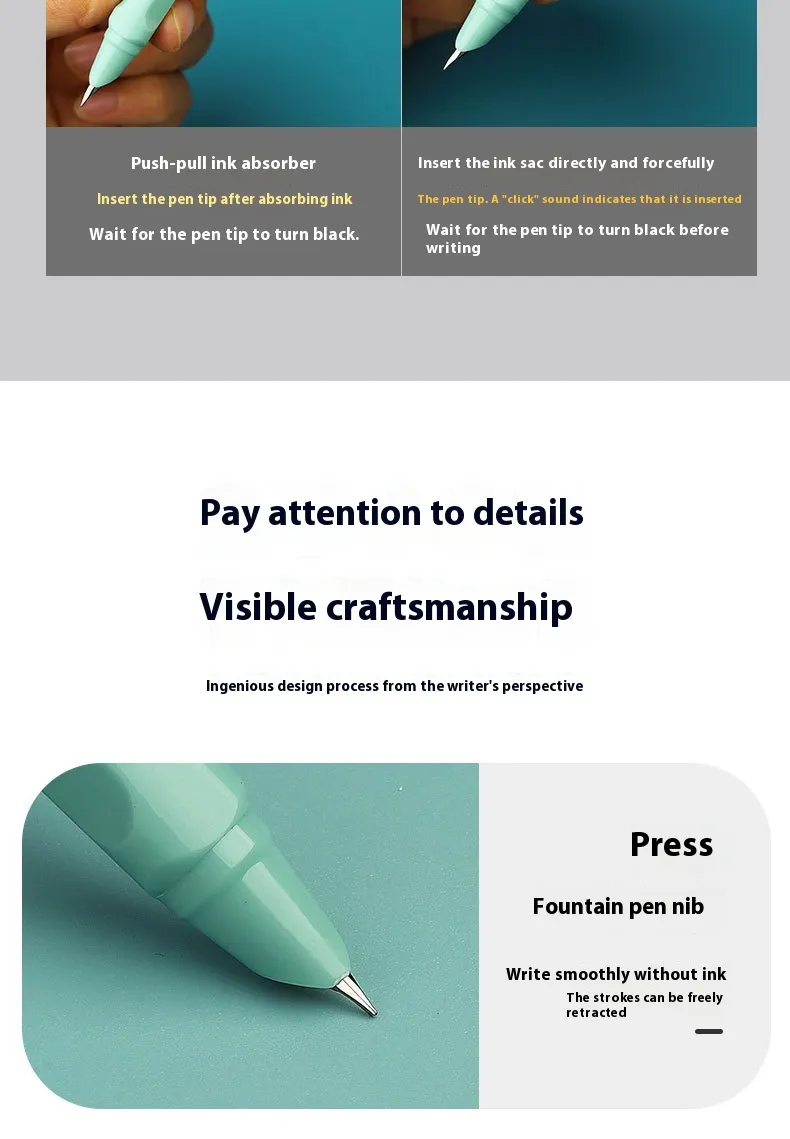Traditional fountain pens offer excellent writing performance but often lack convenience, especially in fast-paced environments. The Retractable Fountain Pen solves this issue by combining classic fountain pen functionality with a modern retractable system.