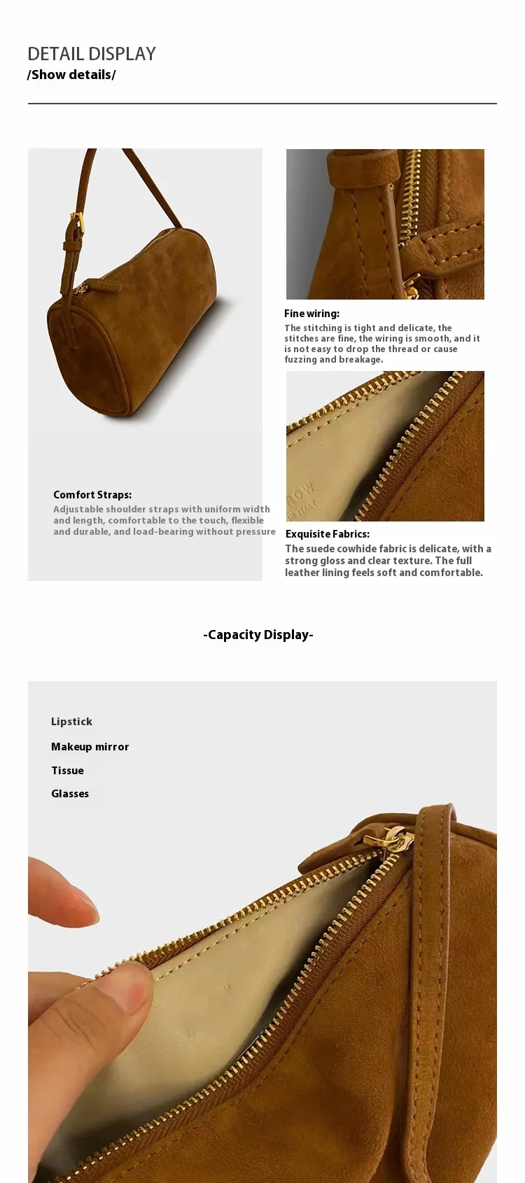 The suede material and stylish design make this bag an ideal accessory for autumn and winter, adding a touch of warmth and sophistication to any outfit. Whether you're dressing casually or for a special occasion, this bag complements various styles and enhances your winter wardrobe.