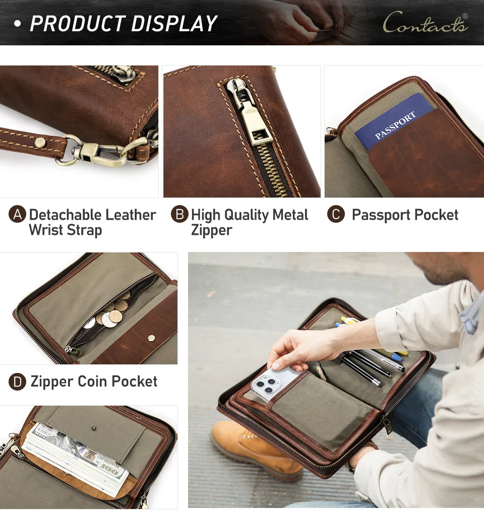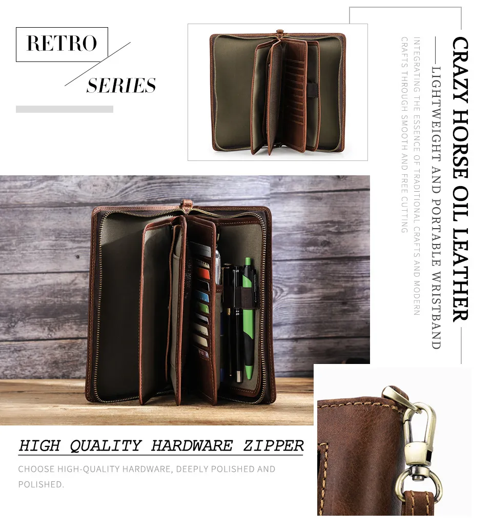 Retro Crazy Horse Cowhide Business Casual Clutch