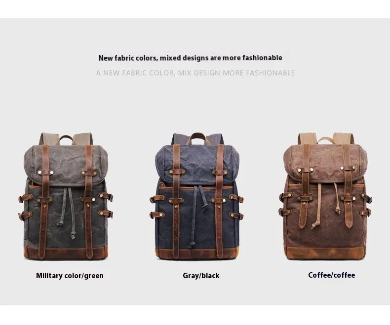 Retro Crazy Horse Leather Casual Canvas Oil Wax Hiking Backpack