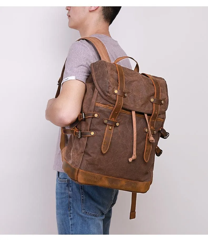 Retro Crazy Horse Leather Casual Canvas Oil Wax Hiking Backpack