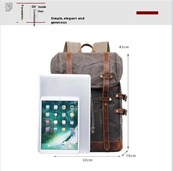 The Retro Crazy Horse Leather Casual Canvas Oil Wax Hiking Backpack has been designed to withstand the elements and stand out in the crowd. With its combination of classic leather accents and durable canvas, it offers not just a trendy look but also practical features for adventurers and urban explorers alike.