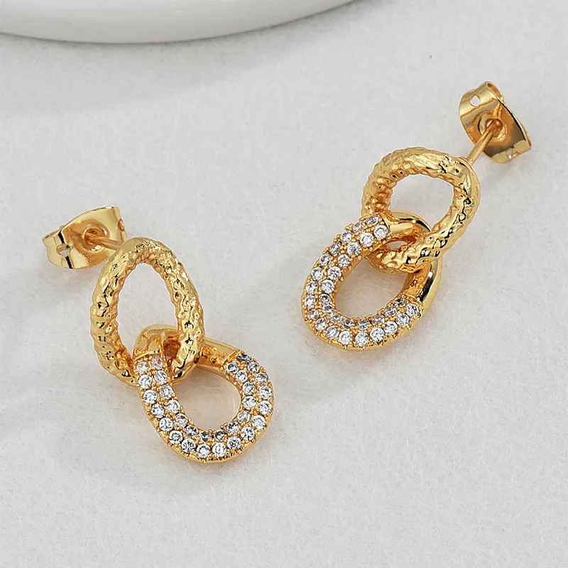 Crafted with high-quality materials, these earrings are designed for comfort and durability. The lightweight build makes them perfect for all-day wear, while the micro-inlaid zirconium offers a refined shine that catches the light with every movement. The double ring structure adds a sense of dimension and depth to the design, creating a statement piece that remains easy to match with your favorite outfits, whether for everyday wear or a special event.