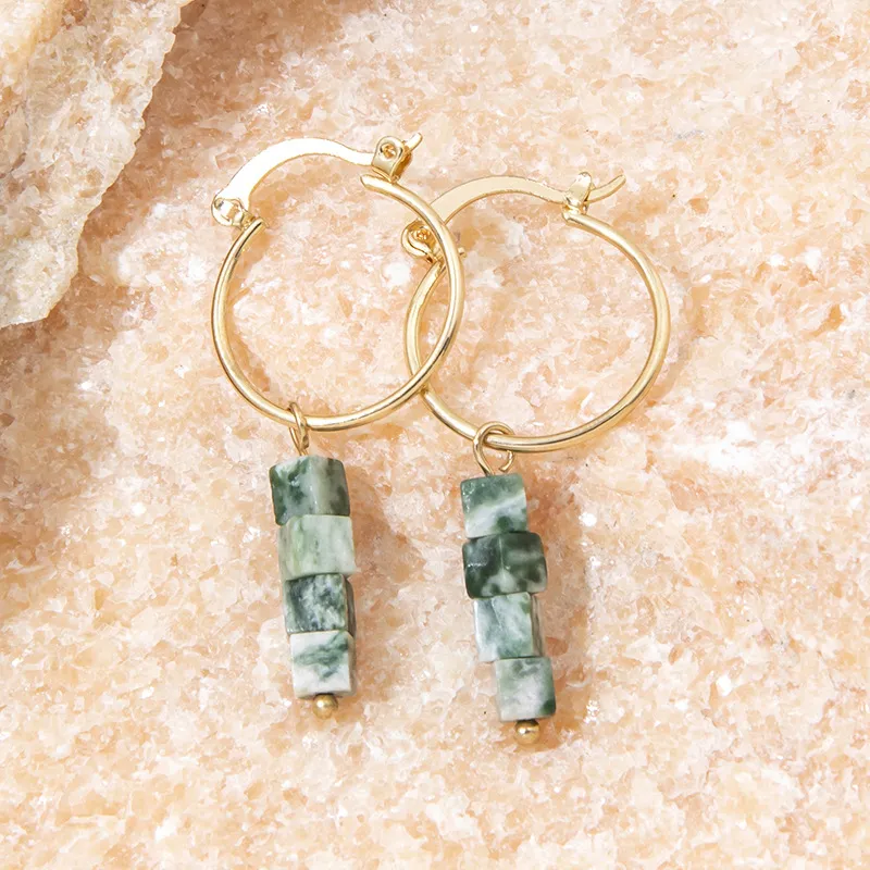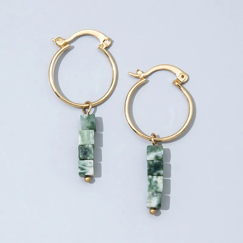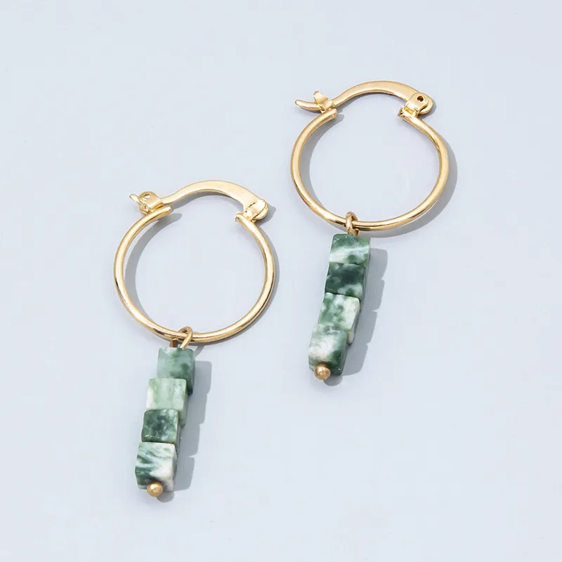 Retro Fashion Broken Malachite Green Natural Stone Earrings