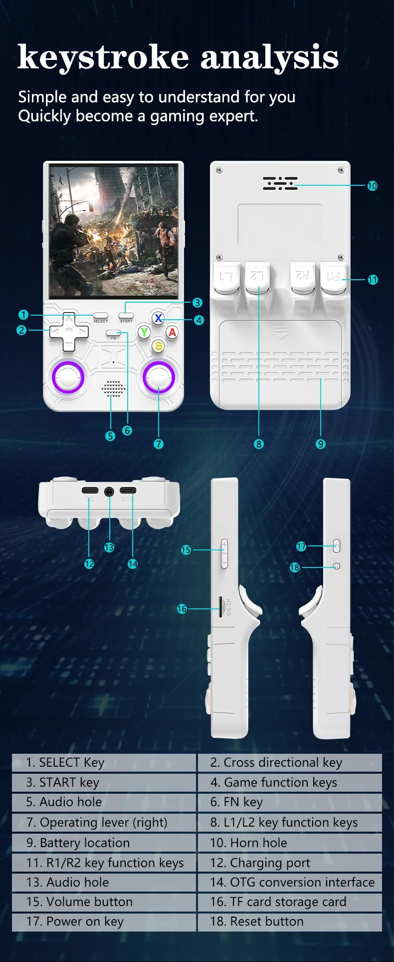 【256G Storage & 30000 Pre-loaded Games】-This handheld game console comes pre-loaded with 30,000 games and supports more than 20 emulators. With its 256G storage capacity, you can enjoy a vast library of games, and there’s an option to insert an additional TF card to expand your game collection even further.