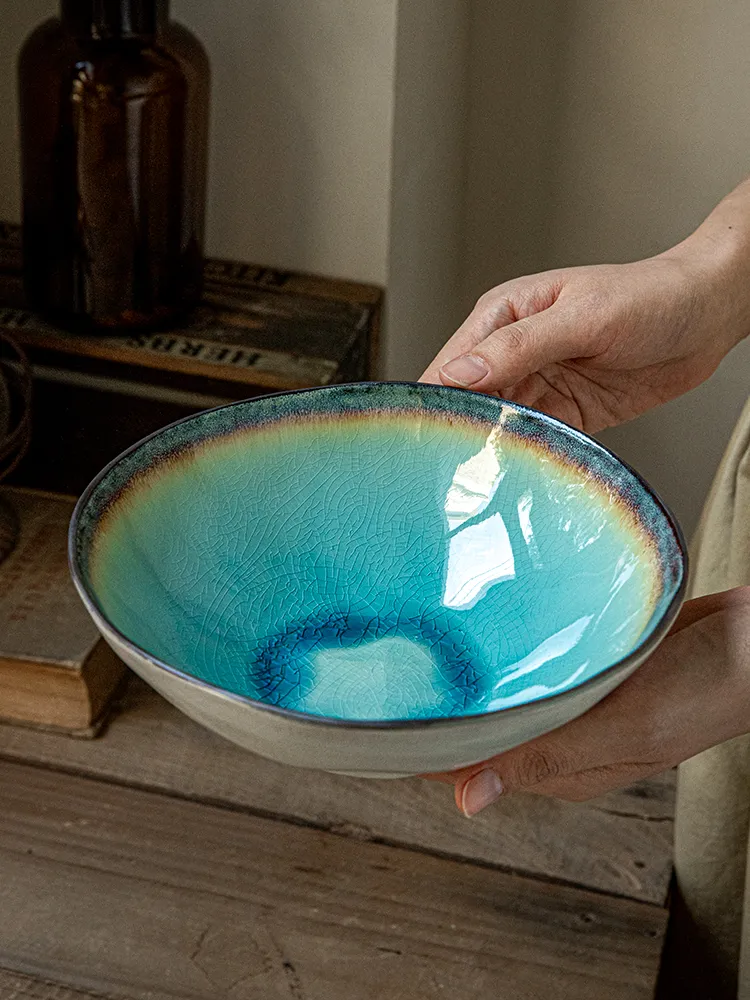 Color classification: navy blue series-7-inch crackle glaze salad bowl x micro flaw