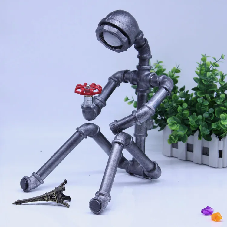 Retro Industrial Style Personality Water Pipe Robot Table Lamp