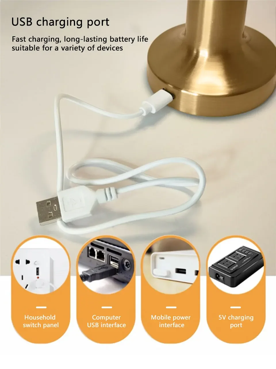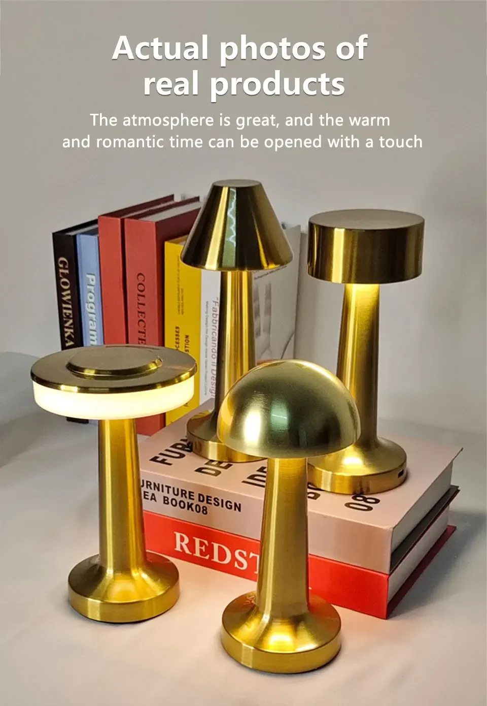 Retro LED Table Lamp - Touch Dimmable Rechargeable Desk Light for Restaurant, Coffee Bar, Home Bedroom Decor