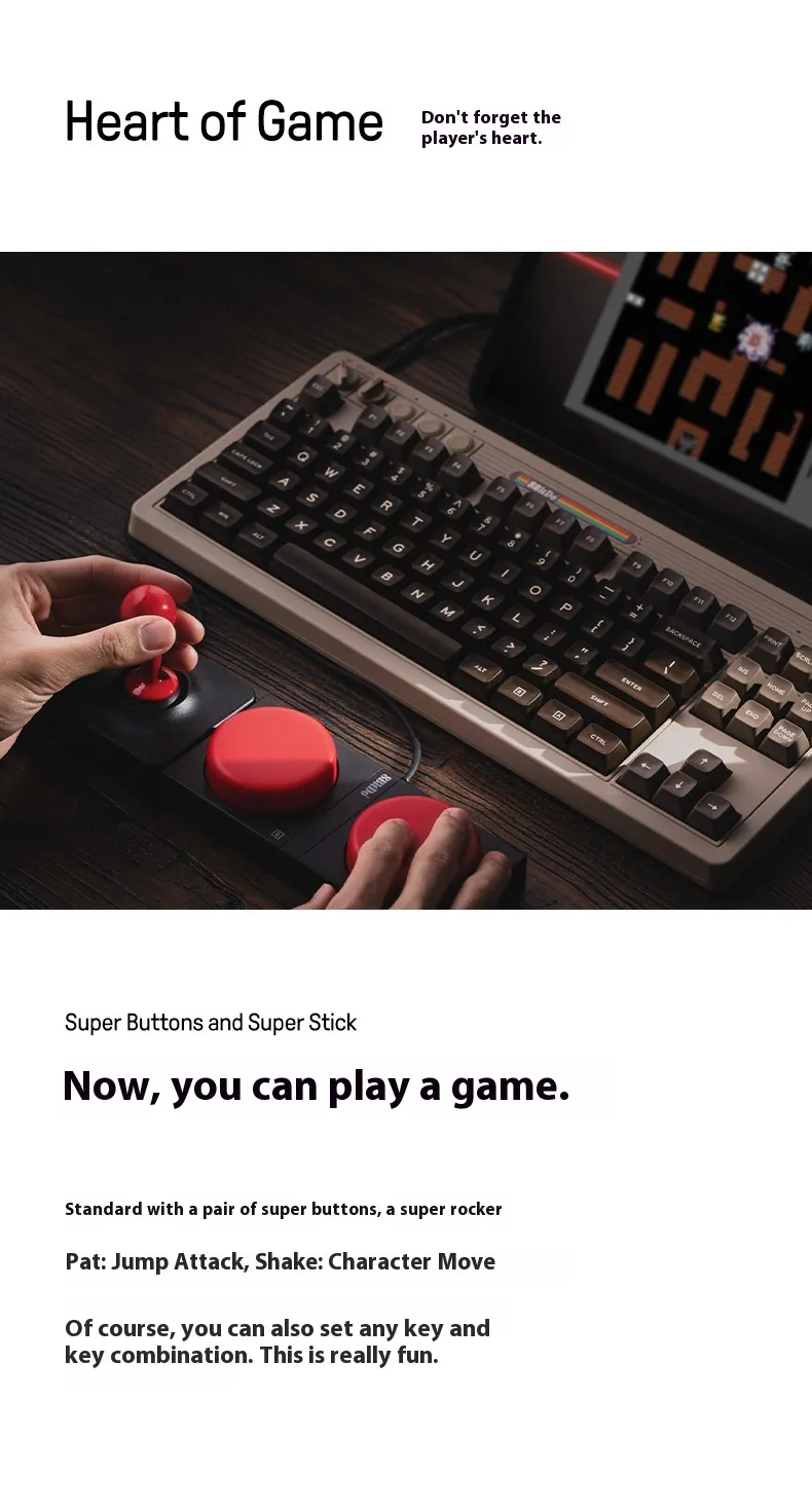 The Retro Mechanical Gaming Keyboard Wireless Bluetooth with Rocker brings together the timeless appeal of vintage design with modern wireless technology, creating a unique and immersive experience for gamers and typists alike. Whether you're a fan of classic aesthetics or seeking the convenience of wireless connectivity, this keyboard offers both style and performance. Equipped with mechanical switches for a satisfying typing feel, Bluetooth connectivity for seamless wireless use, and an innovative rocker switch, it’s designed to offer ultimate versatility and performance in your gaming or work setup.