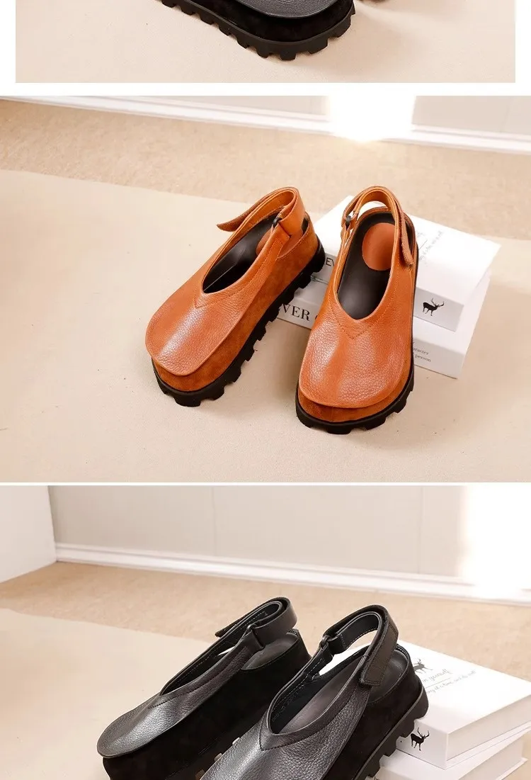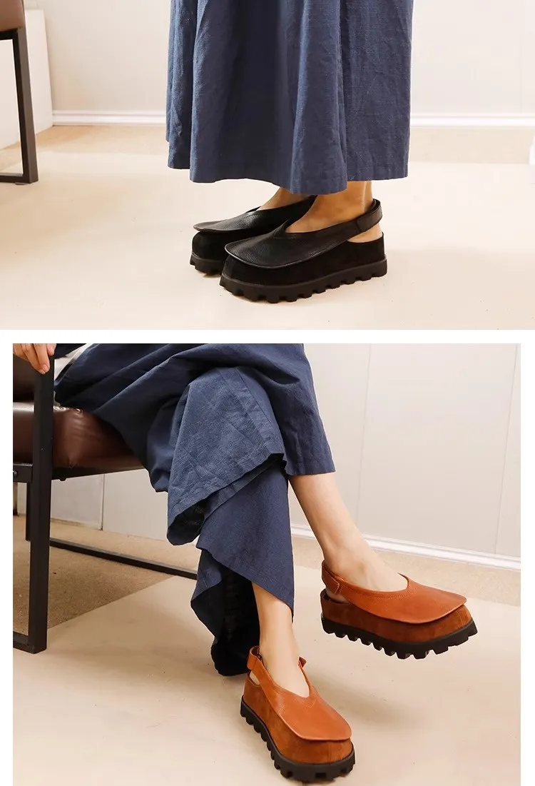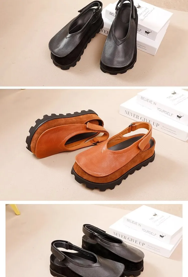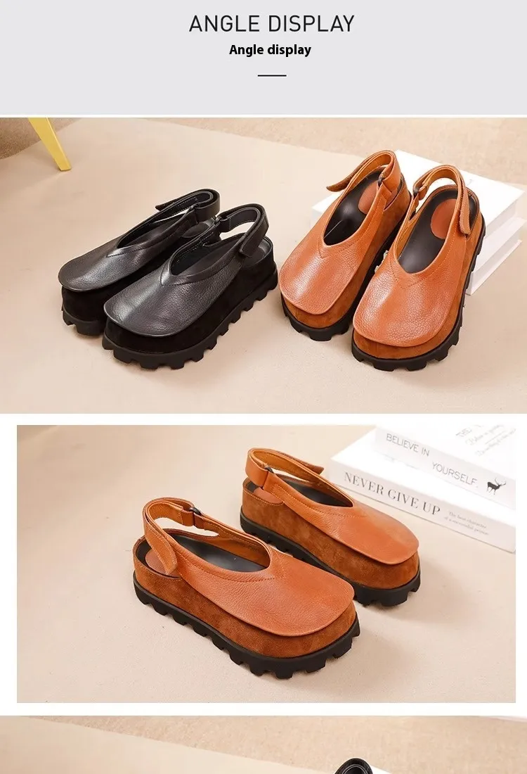 Retro Original Thick-soled Leather Toe Box Soft Bottom Platform Shoes For Women