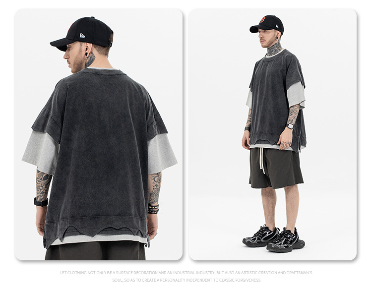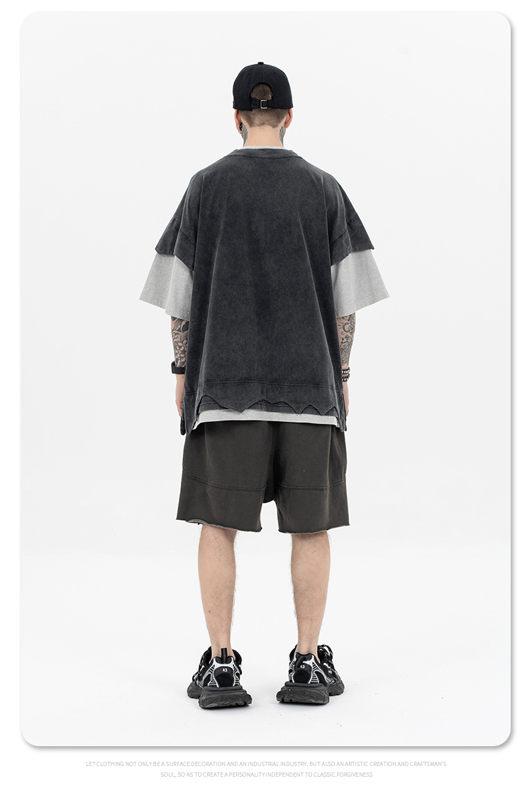 Introducing the Retro Patchwork Double-Layer Color Match T-Shirt, a perfect blend of edgy style and vintage charm. This unique t-shirt is designed for those who appreciate a distinctive and bold look.