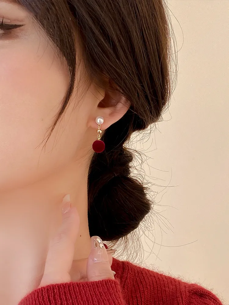 Size: about 2.2cm long, Pearl diameter about 5mm, velvet red ball diameter about 8mm