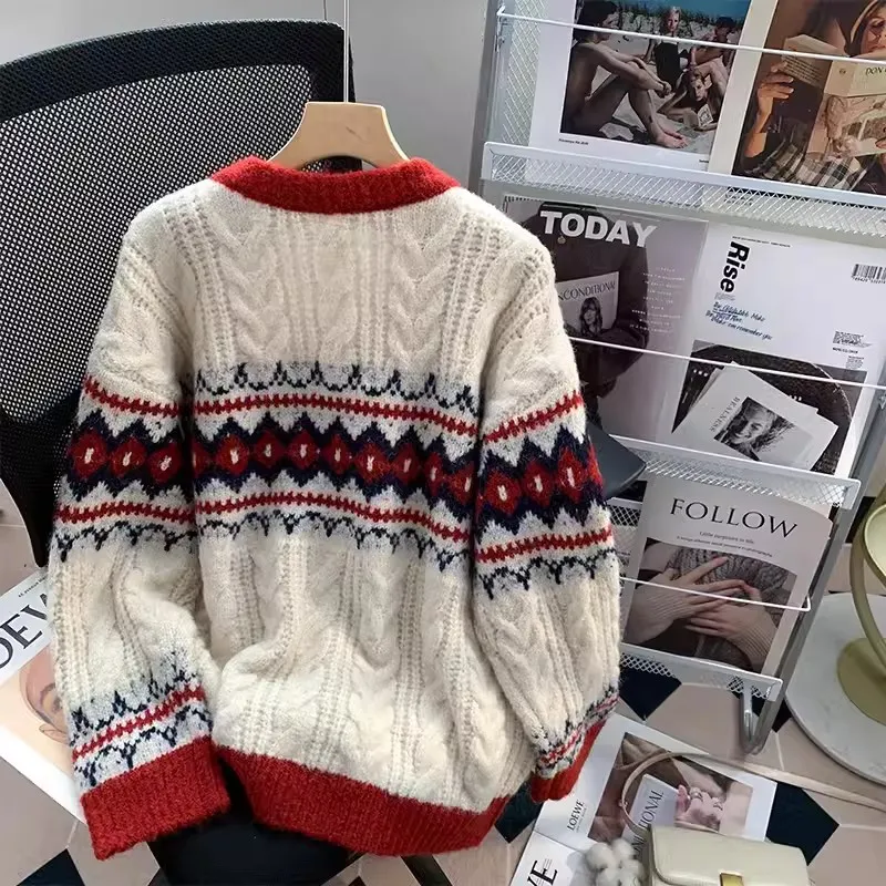 Retro Red New Year Sweater Coat For Women