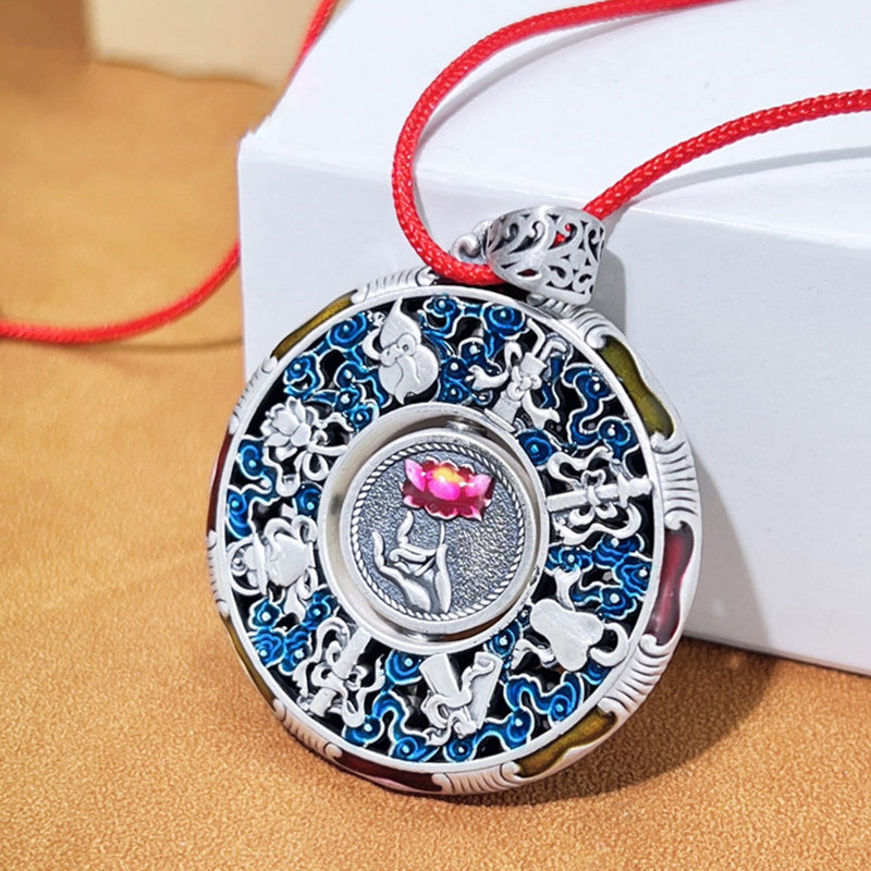 This exquisite piece of jewelry is engraved with the sacred mantra "Om Mani Padme Hum" as well as eight auspicious objects, which can bless you and your loved ones to keep away from disasters and difficulties, eliminate negativity and worries, purify your inner distractions and obsessions, and sublimate and purify your mind