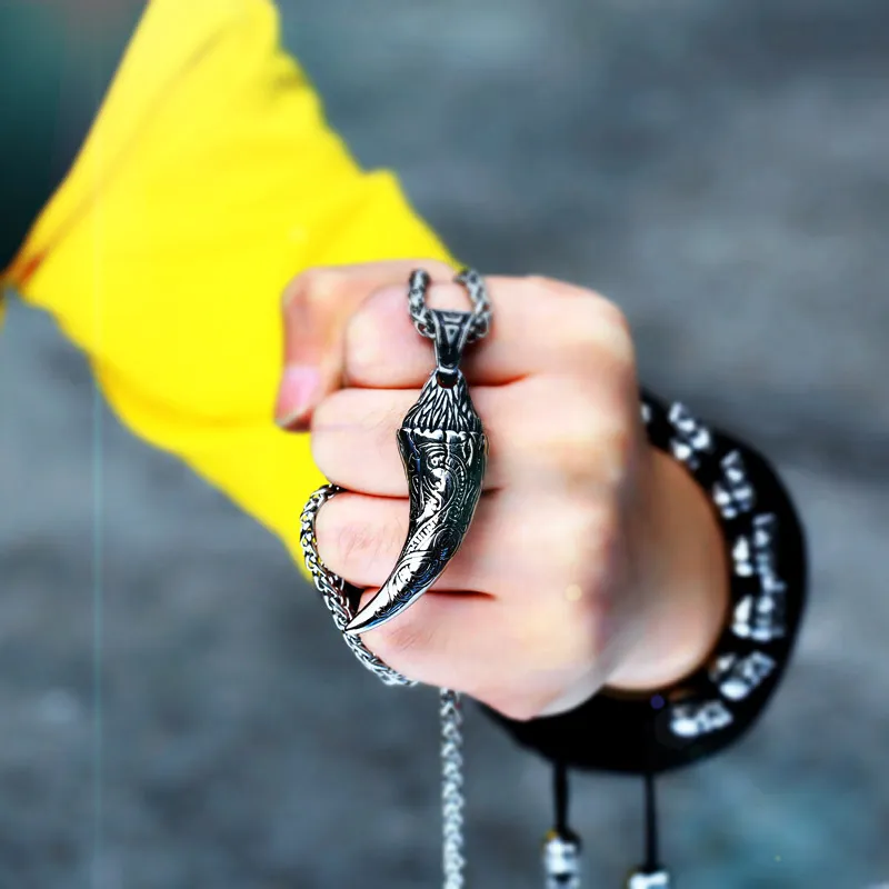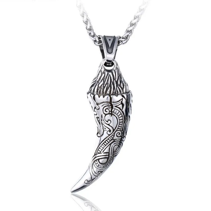 Retro Stainless Steel Wolf Tooth Pendant European And American Personalized Totem Men's Pendant Jewelry