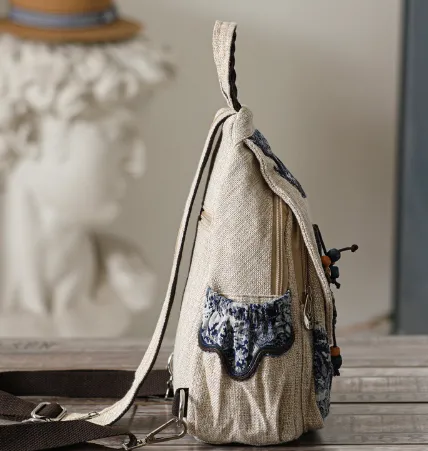 Retro Style Artistic Crafts Woven Pouch Leisure And Convenient Dual-use Canvas Chest Bag Multi-zipper