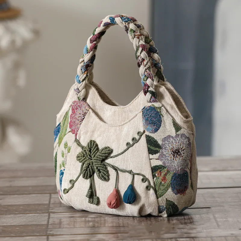 Key Features of the Retro Fabric Ethnic Woven Handbag
