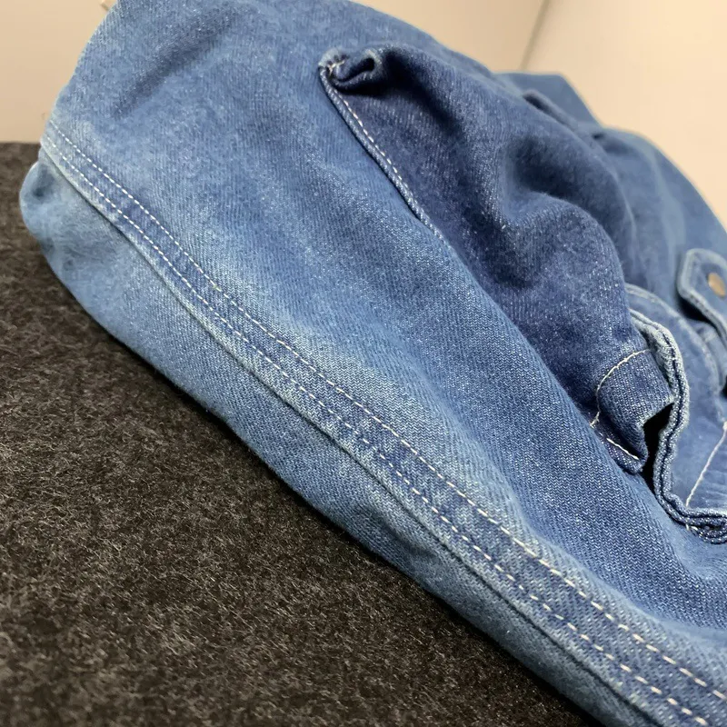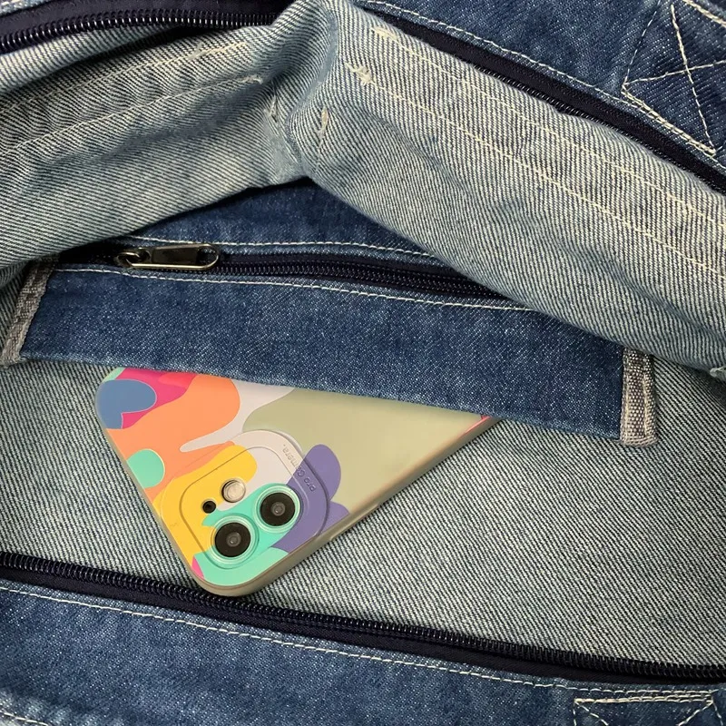Crafted from premium-quality washed denim, this bag delivers an authentic retro aesthetic with a slightly faded, distressed finish. The denim material gives it a soft, relaxed look, making it the perfect complement to casual and street-style outfits.