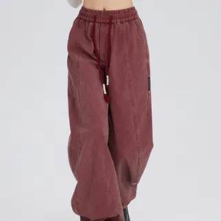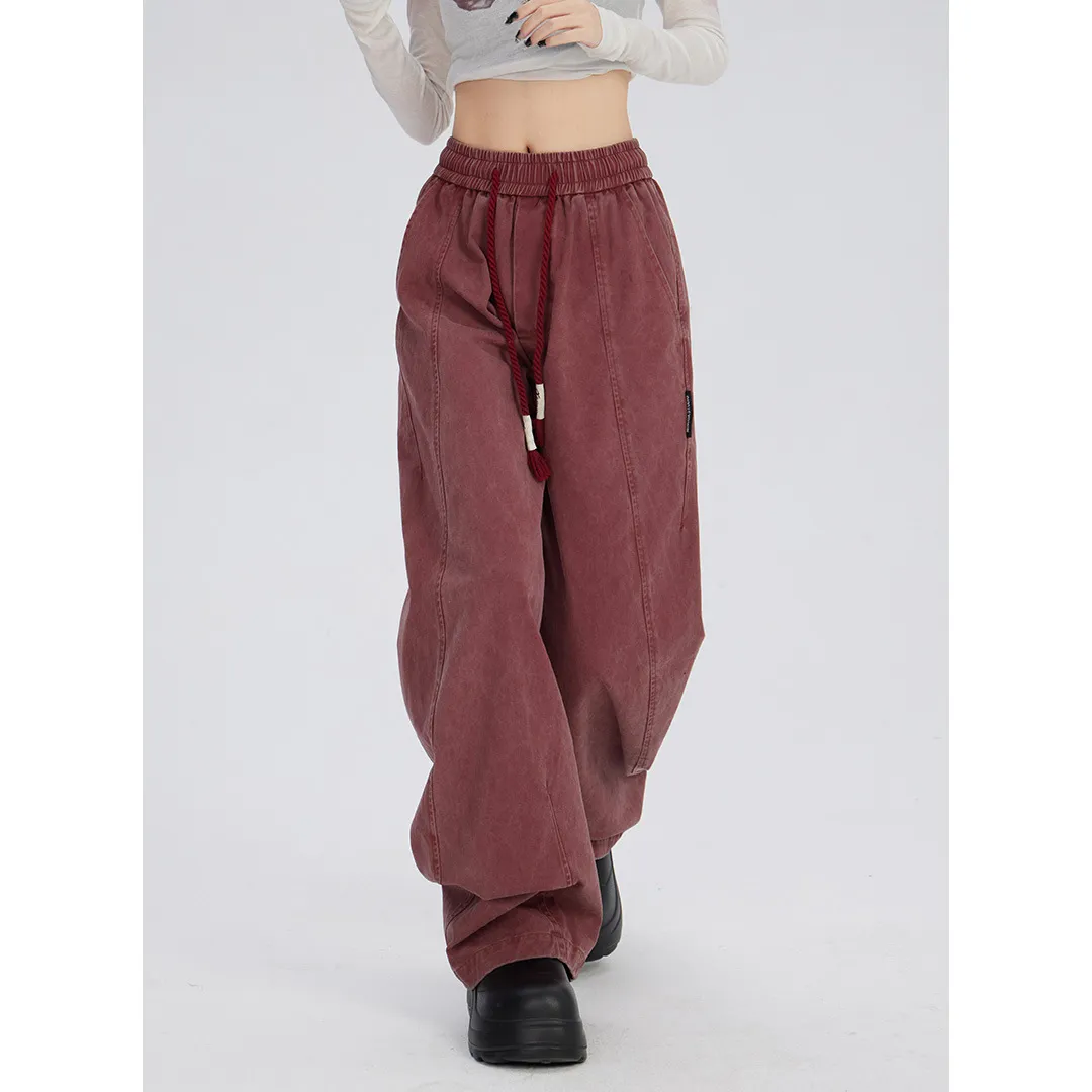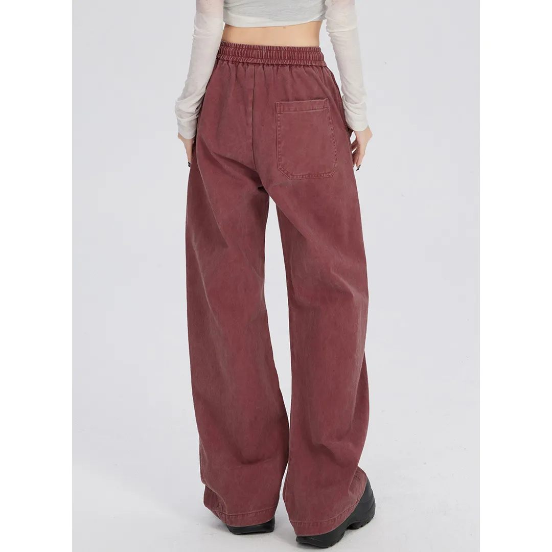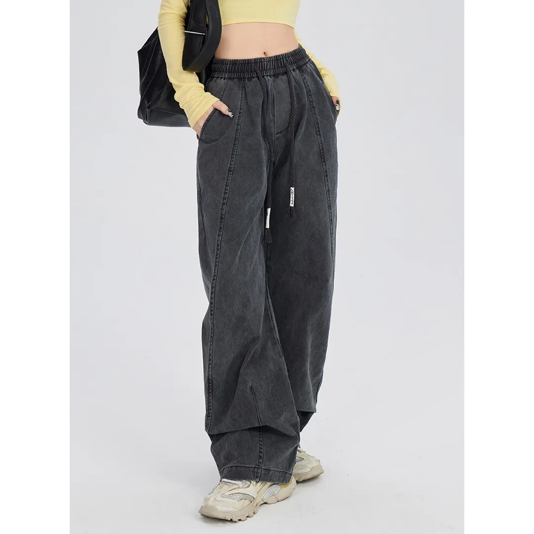 Retro Washed Distressed Drawstring Elastic Waist Jeans