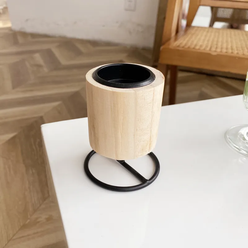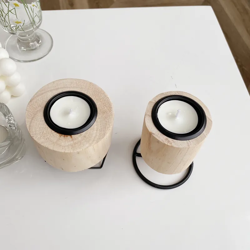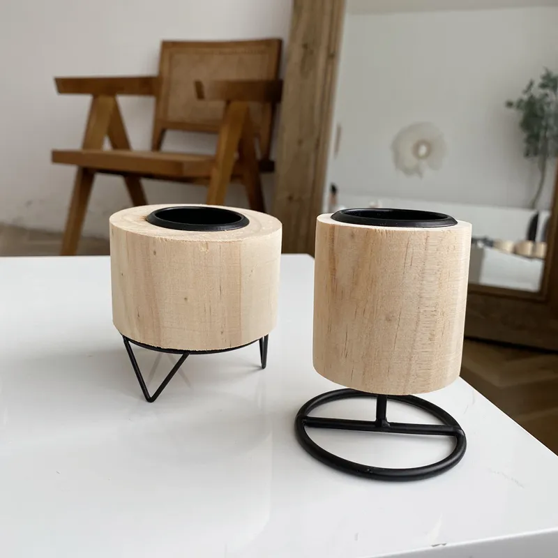 Retro Wooden Wrought Iron Candle Holder Home Accessories Ornaments