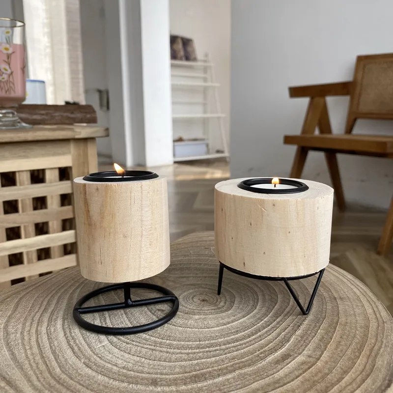 Retro Wooden Wrought Iron Candle Holder Home Accessories Ornaments